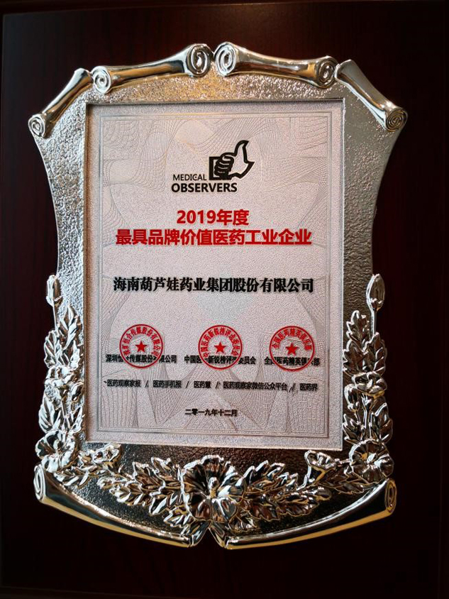 葫芦娃药业荣膺“2019年度最具品牌价值医药工业企业”
