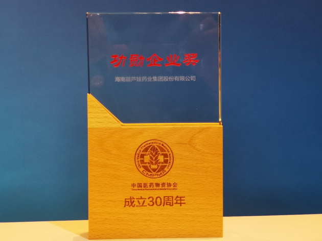 在中国医药物资协会成立三十周年庆典上,葫芦娃药业集团凭借近年来的快速发展,以及对医药行业所带来的积极影响,被中国医药物资协会授予“成立30周年功勋企业奖”。
