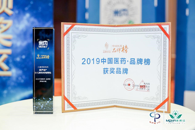 葫芦娃牌小儿肺热咳喘颗粒跻身2019“中国医药•品牌榜”零售终端儿童感冒药三大品牌