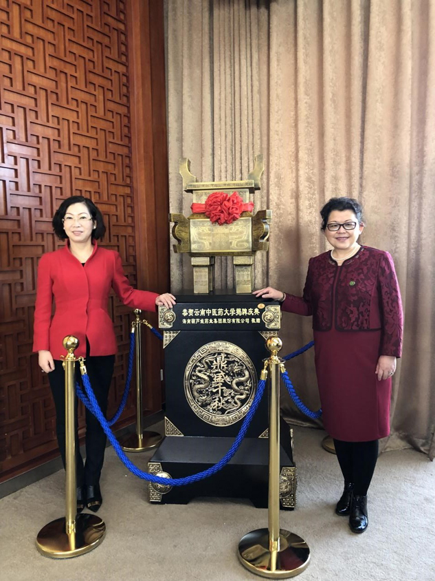 1月19日,云南中医药大学举办更名揭牌仪式,云南中医学院正式更名云南中医药大学。葫芦娃药业集团董事长、云南中医药大学大学名誉教授刘景萍女士应邀出席相关活动,并向云南中医药大学捐赠“鼎盛千秋”铜鼎。