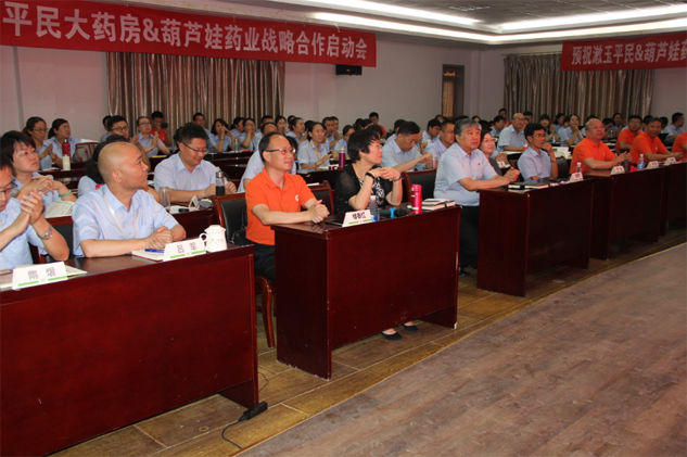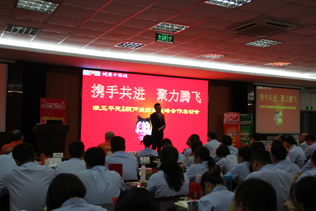 战略合作启动会上,葫芦娃药业集团营销总经理楼春红先生向漱玉平民的管理团队重点介绍了葫芦娃药业的品牌文化以及葫芦娃打造百亿制药航母的战略规划,市场总监孟德诗先生对葫芦娃重点产品做了详细讲解,OTC市场总监付春辉先生则对即将在漱玉平民大药房开展的市场活动方案进行了详细解读,葫芦娃药业营销团队激情洋溢的宣讲赢得了在场全体高管的热烈掌声!
