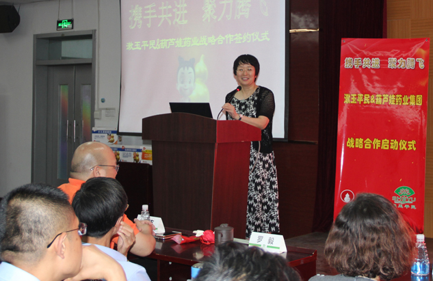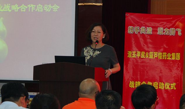 漱玉平民大药房总裁秦光霞女士在讲话中表示,葫芦娃药业的品牌儿药得到消费者的广泛认可,加上市场推广团队的专业服务,相信双方的战略合作一定能取得丰硕成果。