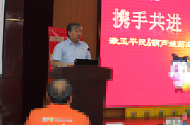 ▲葫芦娃药业集团营销总经理楼春红先生在介绍企业
