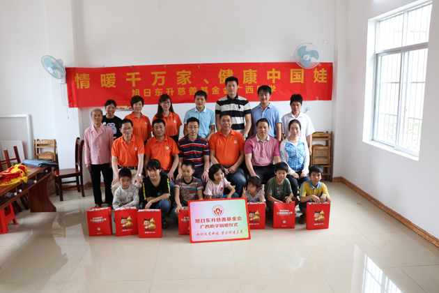▲政府组织和旭日东升慈善基金会代表与受助孩子们合影