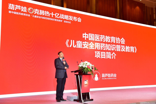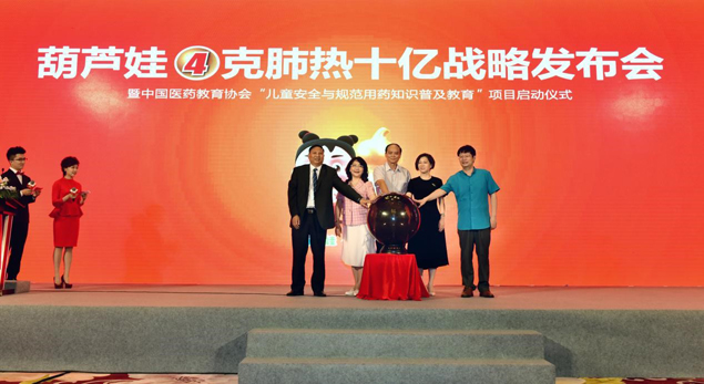2017年5月14日,在隆重的葫芦娃4克肺热十亿战略发布会上,由中国医药教育协会主办,葫芦娃药业集团承办的国家级继续医学教育项目“儿童安全用药知识普及教育项目”正式启动,原海南省食品药品监督管理局局长、海南省药学会理事长廖小平,国家食品药品监督管理总局南方医药经济研究所副所长陶剑虹,著名经济学家、管理突破专家、清华大学政治经济学研究中心企业研究部主任李江涛和葫芦娃药业集团董事长刘景萍、市场总监孟德诗一道按亮启动球。