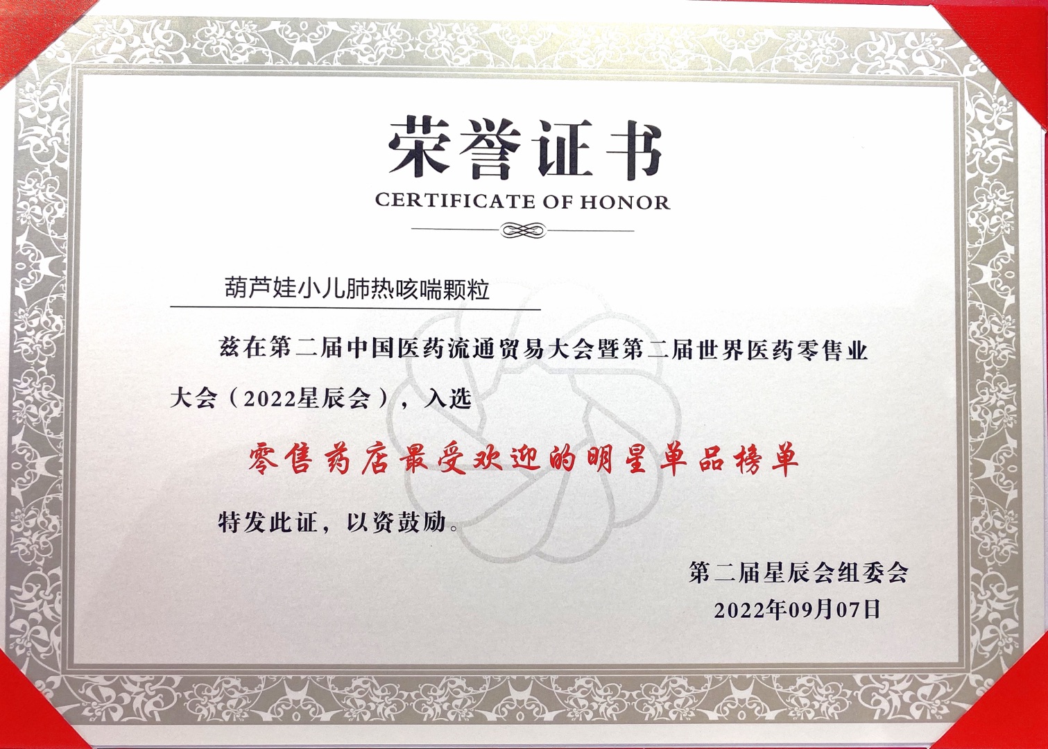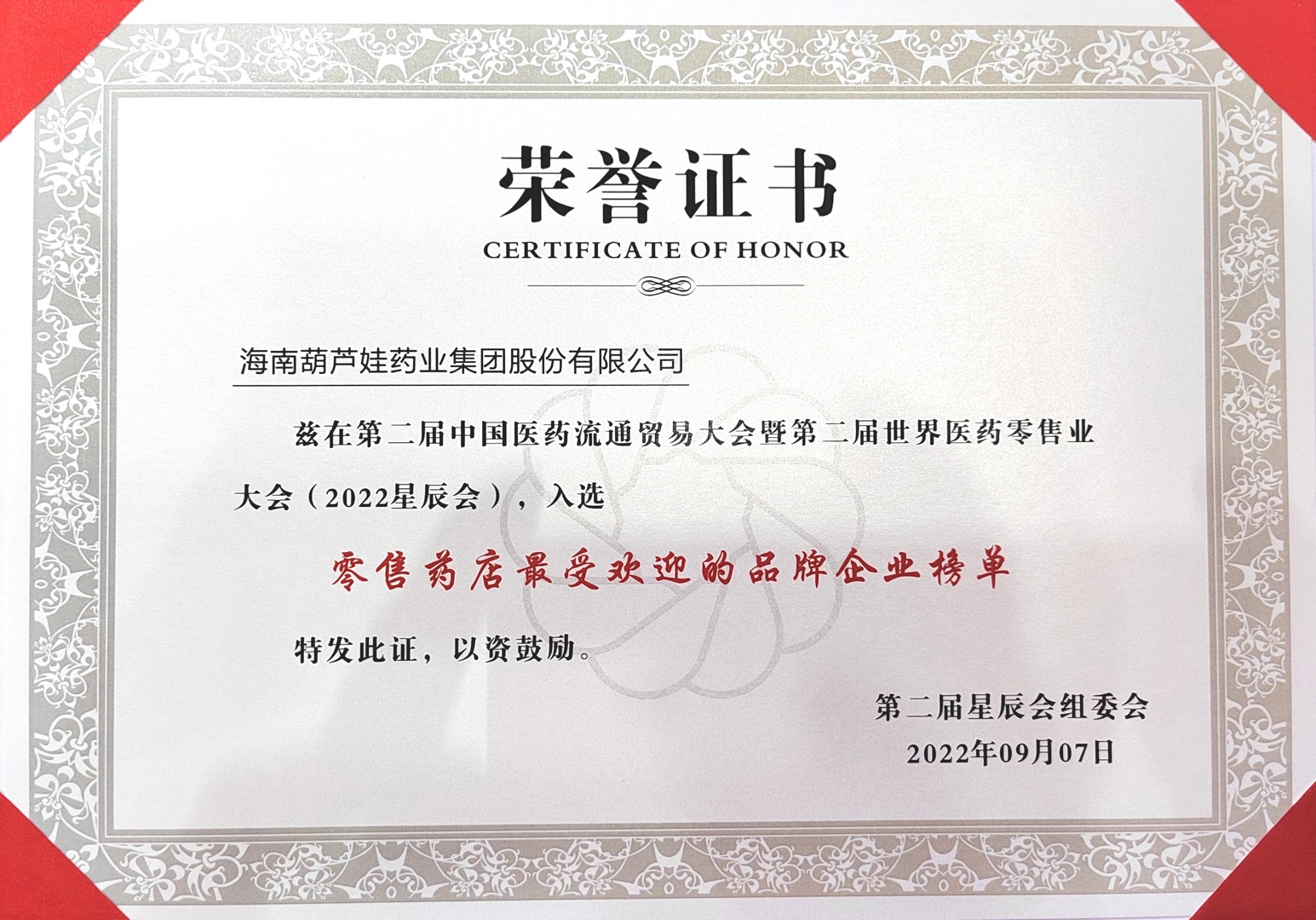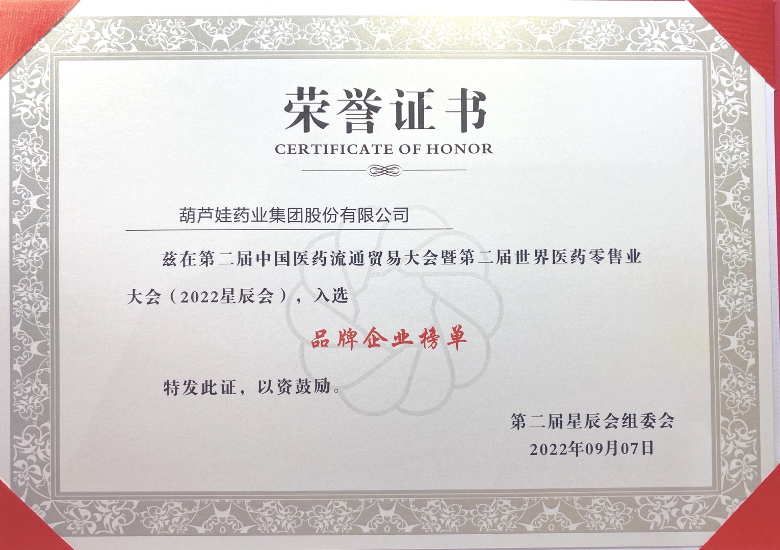 9月7日-9月9日,2022年第二届中国医药流通贸易大会暨第二届世界医药零售业大会(第二届星辰会)在长沙顺利举办。会议期间,葫芦娃药业集团荣获多项行业大奖。