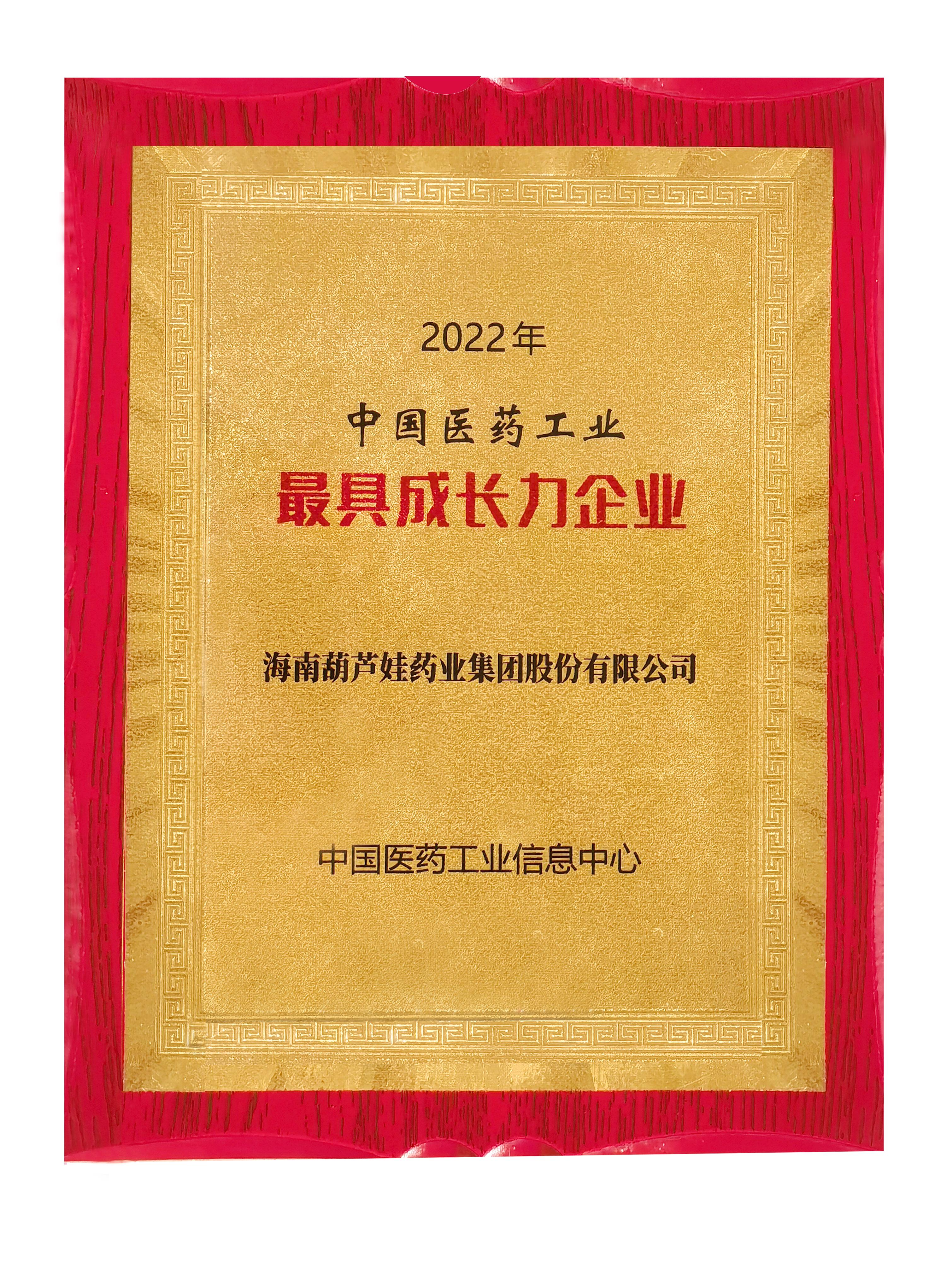 大会期间,备受瞩目的“中国医药工业百强”、“中国医药企业社会责任优秀案例”、“中国医药研发产品线最佳工业企业”、“中国医药工业最具投资价值企业”、“中国医药工业最具成长力企业”和“中国医药新锐创新力量”等六大榜单盛大发布,海南葫芦娃药业集团股份有限公司荣登2022年“中国医药工业最具成长力企业”榜单。