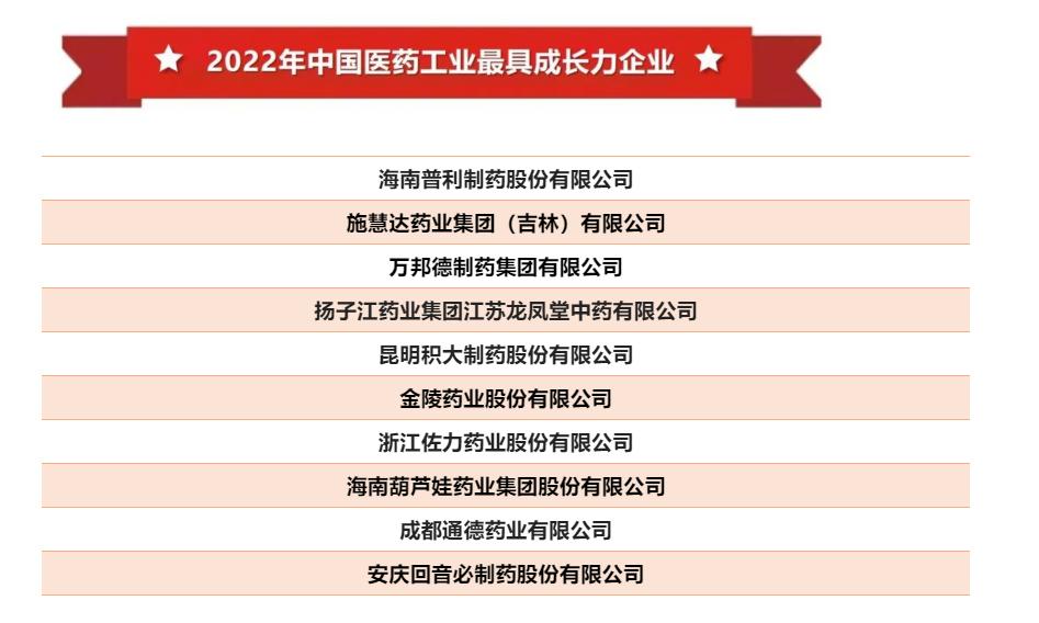 葫芦娃药业荣登“中国医药工业最具成长力企业”十强榜单
