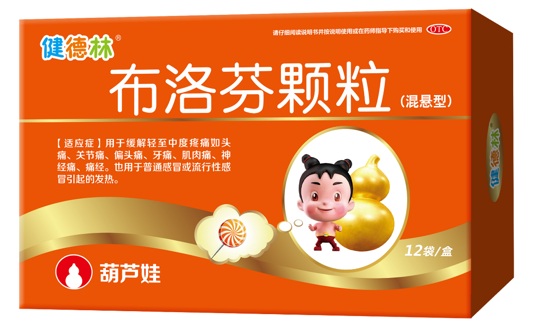 葫芦娃药业集团生产的布洛芬颗粒(混悬型),取得国家知识产权保护,是世界卫生组织和美国FDA共同推荐的用于儿童和成人退烧和止痛的非甾体类解热、镇痛、抗炎药,口感甘甜,儿童服用依从性好。