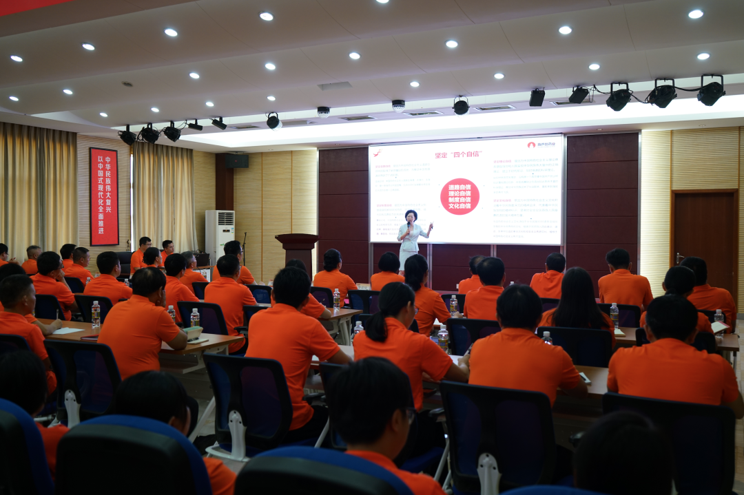 葫芦娃药业集团党委书记、董事长刘景萍同志通过视频连线海口、杭州、南宁、来宾、江西等地的方式,向大家讲授主题党课。刘景萍书记从为什么要深刻领悟“两个确立”的决定性意义、增强“四个意识”、坚定“四个自信”、做到“两个维护”,充分认识海南自由贸易港建设的重大意义、做海南自由贸易港的建设者,将葫芦娃药业集团二次创业和高质量发展与中国式现代化有机结合三个方面进行了全面系统的阐释和深入浅出的解读。党课主题鲜明、逻辑清晰、贴近实际,既有理论高度,又有实践深度,具有实践性和现实性意义。