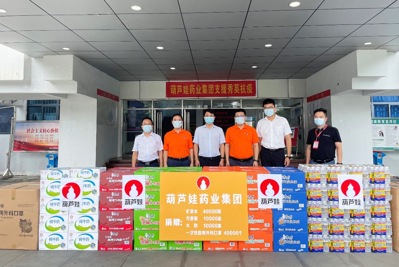 8月9日,葫芦娃药业集团在了解当前防疫紧缺物资情况后,第一时间向海口市秀英区政府捐赠了医用外科口罩、矿泉水、桶装方便面、牛奶等抗疫物资共计10万件,通过政府统一调度,将防疫工作所急需的物资发放到街道办、社区、志愿者等一线。