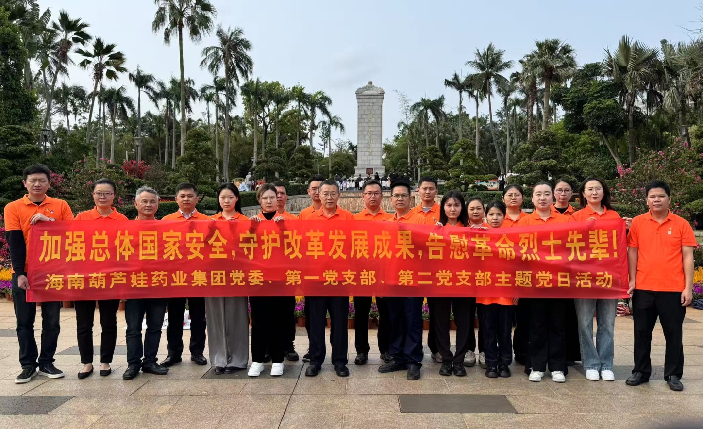 2025年4月3日上午,春光和煦,温暖宜人。根据海南葫芦娃药业集团党委2025年党建工作计划和深入贯彻中央八项规定精神学习教育计划安排,集团党委组织第一党支部、第二党支部在琼部分党员前往海口公园内的海南革命烈士纪念碑和冯白驹纪念亭开展“加强总体国家安全,守护改革发展成果,告慰革命烈士先辈! ”主题党日活动。