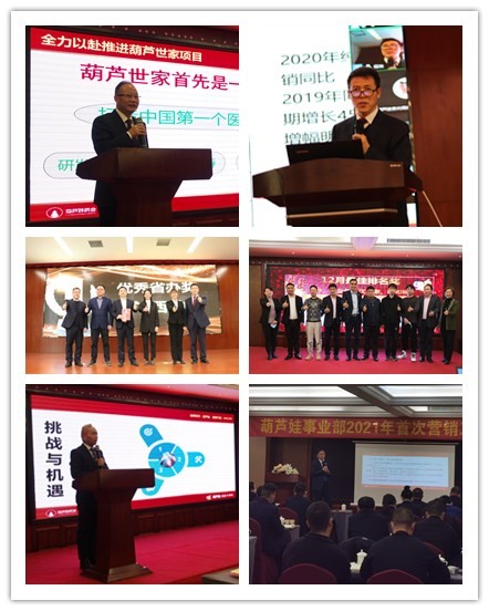 从2021年1月中旬开始,葫芦娃事业部、葫芦世家运营中心、OTC事业部、商务部、医疗机构事业部等部门的年度营销工作会议陆续在杭州、广西召开。葫芦娃药业集团董事长刘景萍女士不辞辛劳、奔波两地,与葫芦娃的营销将士们一道回眸2020,展望2021。